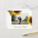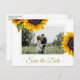 Big yellow gold sunflowers faux gold calligraphy script and frame making a modern rustic photo save the date wedding postcard. +++++++++ Easy to personalise with your names and text! ++++++++++ Suitable for floral summer or autumn fall / garden backyard rustic country, bohemian or farmhouse themed weddings.