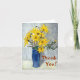A floral 'Thank You' Notecard with golden sunflowers in a tall blue vase, from an original oil pastel painting by Judy Adamson. The lettering is in rusty brown.