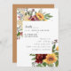 Modern Sunflowers & Burgundy Bridal Shower Invitation. Foliage. Front white, back caramel.
