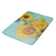 Sunflowers (1888)  Vincent van Gogh. Still life on a blue background. A bright bouquet of sunflower flowers stand in a vase. Reproduction of famous works of art  images in the public domain.