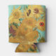 Sunflowers (1889) Vincent van Gogh. Still life on a blue background. A bright bouquet of sunflower flowers stand in a vase. Reproduction of famous works of art images in the public domain.