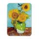 Sunflowers (1888) Vincent van Gogh. Still life on a blue background. A bright bouquet of sunflower flowers stand in a vase. Reproduction of famous works of art images in the public domain.