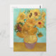 Sunflowers (1889) Vincent van Gogh. Still life on a blue background. A bright bouquet of sunflower flowers stand in a vase. Reproduction of famous works of art images in the public domain.