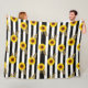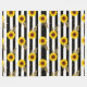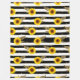 Sunflowers with Black and White Horizontal Lines Fleece Blanket