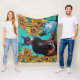 SUNFLOWERS WITH BLACK CAT IN BLUE TURQUOISE FLEECE BLANKET