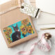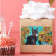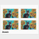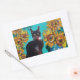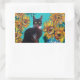 SUNFLOWERS WITH BLACK CAT IN BLUE TURQUOISE RECTANGULAR STICKER