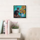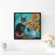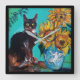 SUNFLOWERS WITH BLACK CAT IN BLUE TURQUOISE SQUARE WALL CLOCK