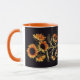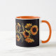 SUNFLOWERS WITH GREEN LEAVES IN BLACK MUG