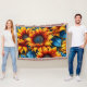 Sunflowers yellow red and Blue Throw Blanket