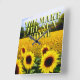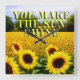 Pictured is a oil painted sunflower field with the words you make the sun shine, written in gold.