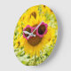 Sunglasses On Sunflower Large Clock