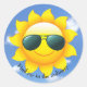 Sunglasses on yellow sun in sky with quote classic round sticker