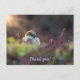 Thank you postcard featuring a cute wild finch sits on a bush with the sunlight behind it. Isn't he or she cute? I love how it's feathers are blowing in the gentle wind. Looking for more prints or products? Feel free to visit my store: http://www.zazzle.com/timelessmomentsphtgy