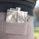 The flask itself is fine. It’s a cheap flask, obviously bought in bulk, however am prepared to overlook that. Given that it is a personalized item, I would have liked to have seen gift boxing instead of the generic packaging. Terrible printing, and/or quality. It’s a cheap, tacky vinyl. It is not cut straight and is also applied in a way that it is overhanging the bottom, causing the glue to catch on items and it will eventually roll and tear, damaging the wrap.