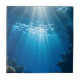 Bring the breathtaking beauty of a tropical underwater paradise into your home with this stunning ceramic tile. Featuring a vibrant coral reef bathed in dramatic sunbeams, this tile captures the serene dance of light through crystal-clear blue water. Brilliant rays pierce the surface, illuminating diverse coral formations where colourful fish swim freely. The unique perspective looking upwards includes glimpses of green trees and blue sky from above the water line, adding a fascinating layer of detail.