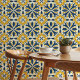 Brighten up your home with the radiant beauty of our "Sunlit Splendour" Peel & Stick wallpaper. This vibrant design features intricate Azulejo tile patterns in striking shades of blue and yellow, capturing the essence of Mediterranean elegance. The bold geometric and floral motifs, set against a creamy white background, create a dynamic and eye-catching look, perfect for enhancing kitchens, bathrooms, or feature walls. Crafted from high-quality peel and stick material, this wallpaper ensures easy application and removal, making it an excellent choice for both renters and homeowners seeking to add a touch of timeless charm to their decor.