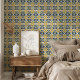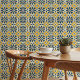 Brighten up your home with the radiant beauty of our "Sunlit Splendour" Peel & Stick wallpaper. This vibrant design features intricate Azulejo tile patterns in striking shades of blue and yellow, capturing the essence of Mediterranean elegance. The bold geometric and floral motifs, set against a creamy white background, create a dynamic and eye-catching look, perfect for enhancing kitchens, bathrooms, or feature walls. Crafted from high-quality peel and stick material, this wallpaper ensures easy application and removal, making it an excellent choice for both renters and homeowners seeking to add a touch of timeless charm to their decor.