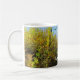 Here's an autumn mug presenting a luminous forest scene on a sunny afternoon, with clear blue skies overhead and trees adorned in an autumnal blend of yellow, green, and golden brown leaves. Personalize it with a name or an expression.