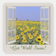 A beautiful scene, golden yellow sunflowers shimmer in the heat of a summer day. Imagine throwing open your window, taking a deep breath and enjoying this floral beauty!