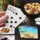 Deck of playing cards featuring a colourful illustration of a relaxing beach scene.