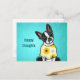Keep in touch with cute dog art postcards you may customise with a personal message! Features an original illustration by Andie of Off-Leash Art of the favourite Boston Terrier dog breed.
