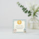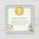 This adorable 'Books for Baby' enclosure card features a whimsical watercolor design with a smiling sun and a fluffy bunny, perfect for a baby shower. The soft blue and cream stripes create a cheerful backdrop, while the text gently asks guests to bring a book instead of a card, to be signed and cherished for years to come. It's a sweet way to build a treasured library for the new arrival, making this a unique and heartfelt addition to your baby shower invitations.