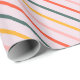 The paper features a large-scale, mid-century modern geometric pattern consisting of diagonal stripes. The design uses a coordinated mix of muted coral, sunny mustard yellow, and sage green set against a soft lavender or pale pink background. Perfect for birthdays, holidays, or everyday gifting, this design adds a joyful pop of color to any present—no extra embellishments needed.