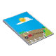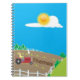 Children's notebook with brightly coloured graphic art of a farmer in his tractor tending to his farm on a sunny day. Personalised with your child's name in the freshly ploughed field.
