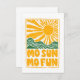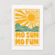Experience the radiant energy of Sunny Fun Fiesta, a vibrant artwork featuring a glowing yellow sun with dynamic rays, set above green and white wavy lines reminiscent of hills or waves. With bold, yellow typography proclaiming MO SUN MO FUN, this design captures the essence of joy and positivity on sunny days. Perfect for lovers of playful and modern art, this piece adds a splash of happiness and charm to any space, accessory, or wardrobe.