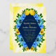 Sunny lemon wedding collection with blue wildflowers and roses with botanical greenery