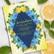 Sunny lemon wedding collection with blue wildflowers and roses with botanical greenery