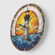 Sunny Lighthouse Waves Stained Glass Large Clock
