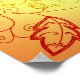 This poster print in sunny colours of an original drawing shows a Pomeranian dog surrounded by idealised flowers and leaves. I like to think of my pets resting in a perfect place when they pass on, which is what made me create this piece, based on henna mehndi patterns.