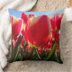 Sunny Red Tulips Close Up Throw Pillow