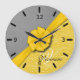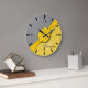 Sunny Ribbon, Two Tone Yellow Waves Grey Fabric Large Clock
