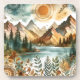 Sunny Rustic Boho Nature Pattern Mountain Lake Coaster