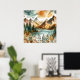 Sunny Rustic Boho Nature Pattern Mountain Lake Poster
