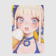 Bright pop-art portrait of a wide-eyed anime beauty savouring a vanilla cone. A vibrant yellow backdrop, glossy lips, blonde bangs, and blue floral accents create a sunny, manga-inspired summer vibe perfect for cute aesthetic lovers.