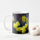 Cheery bright daffodils with a white picket fence, makes a lovely spring scene on cheery mug.