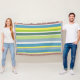 Blue, green, white and yellow stripes throw blanket.