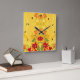 Bright yellow background featuring yellow, orange and red flowers.