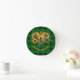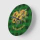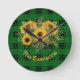 Sunny Sunflower Bouquet on Green Plaid Round Clock