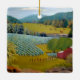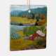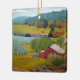 Beautiful vineyard on farm in Augusta Missouri featuring barn, pond, trees, grape vines, and boulders. Designed from an original oil painting by fine artist Daniel Fishback.