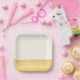 Sunny Whitewash Linen Yellow Polkadots Custom Text Paper Plate
