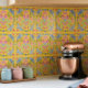 With a bright sunny floral design these tiles are a unique addition to kitchen or bathroom backsplashes.