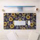 Sunny Yellow Gold Navy Sunflowers Leaves Pattern Desk Mat
