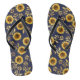 Sunny Yellow Gold Navy Sunflowers Leaves Pattern Thongs