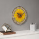 A photo of a bright, sunny yellow sunflower on a burlap background gives this wall clock a rustic, country feel. Roman numerals complete the clock face.