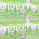 Hand Drawn Imaginary Sunny Hill Farm Wallpaper