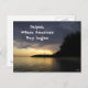 This postcard is a beautiful photo of Pau Pau Beach, one of Saipan's western facing beaches, at sunrise, The silhouette of the beach and tree lines, combined with the heavy clouds and reflection of sunlight on the water, make it a spectacular scene.